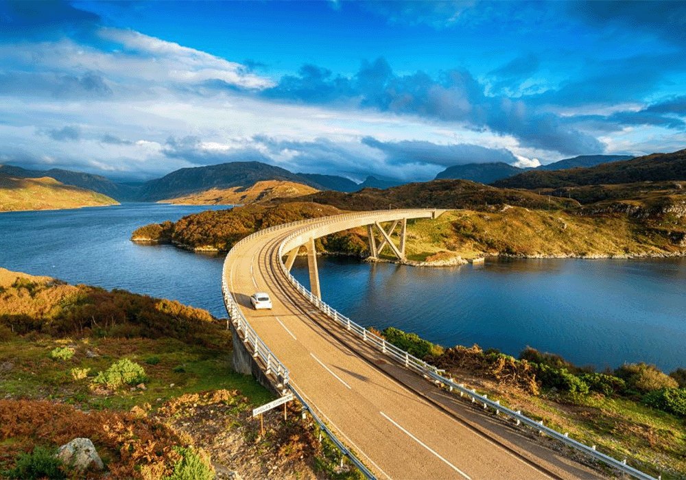 De North Coast 500 van Schotland is een roadtriproute die op je bucketlist staat en die reizigers meeneemt op een adembenemende reis door enkele van de meest ruige en afgelegen landschappen in de Schotse Hooglanden. Deze 800 kilometer lange lus begint en eindigt in de pittoreske stad Inverness en doorkruist winderige heidevelden, dramatische zeekliffen en oude kastelen, en biedt bij elke bocht een prachtig uitzicht op de Schotse kustlijn. Hoogtepunten langs de route zijn onder meer het iconische Eilean Donan Castle, de ruige kustlijn van de NC500 en de majestueuze bergen van het Cairngorms National Park.