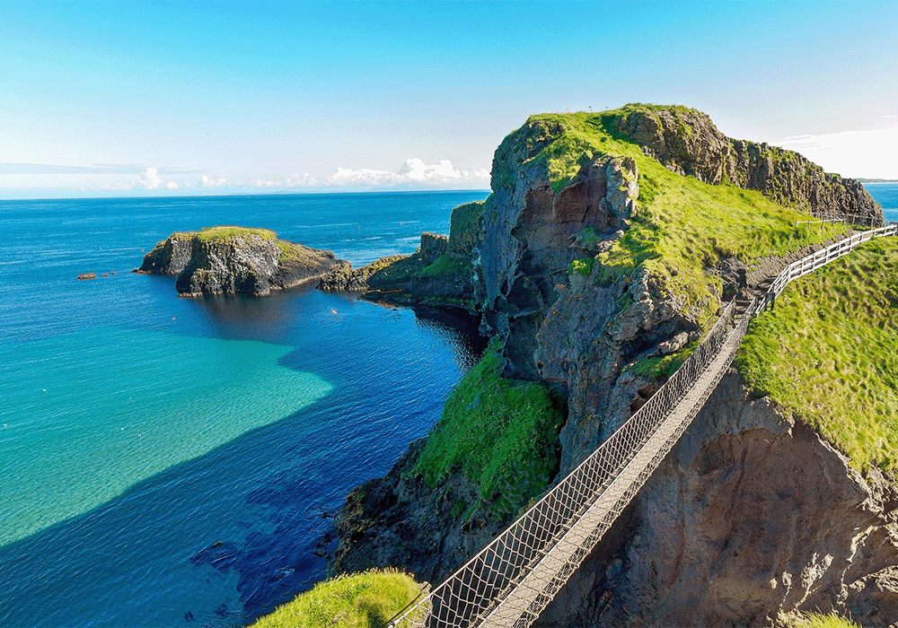 De Causeway Coastal Route van Noord-Ierland is een adembenemende roadtriproute die zich een weg baant langs de ruige kustlijn van County Antrim en reizigers een adembenemend uitzicht biedt op de Ierse Zee en iconische bezienswaardigheden zoals de Giant's Causeway en de touwbrug van Carrick-a-Rede. Deze schilderachtige rit begint in de levendige stad Belfast en strekt zich uit in noordelijke richting naar de historische stad Derry. U loopt door pittoreske kustdorpjes, weelderig groen landschap en dramatische zeekliffen. Onderweg kunnen reizigers oude kastelen verkennen, verse zeevruchten proeven en de warmte en gastvrijheid van het Ierse volk ervaren.