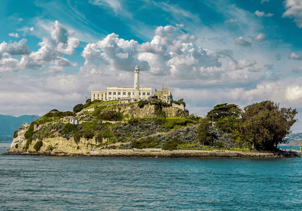 Alcatraz, ook bekend als The Rock, is een historische eilandgevangenis in de Baai van San Francisco, Californië. Bezoekers kunnen een veerboot nemen om de gangen van de gevangenis te verkennen. Vanwege zijn uniekheid is het een aantrekkingspunt.
